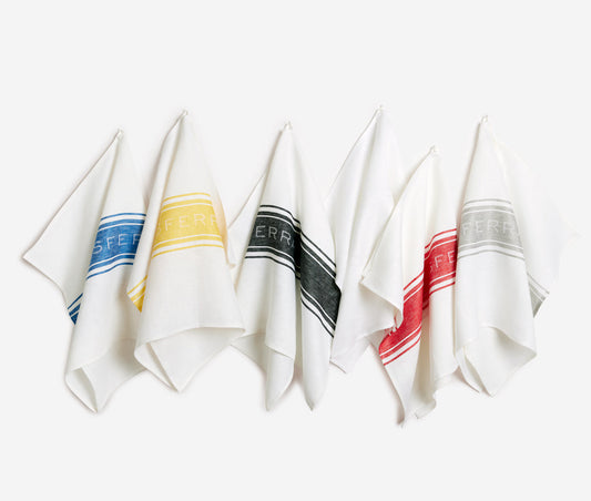 Discover SFERRA's collection of kitchen towels. From white linen towels with a vivid central stripe to textured waffle weave cotton towels, these luxury kitchen towels are an elegant display of functional design and impeccable style.